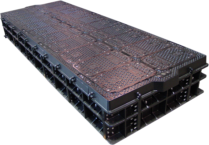 重量車両対応の大型鉄蓋。高い耐荷重性能を実現しています。