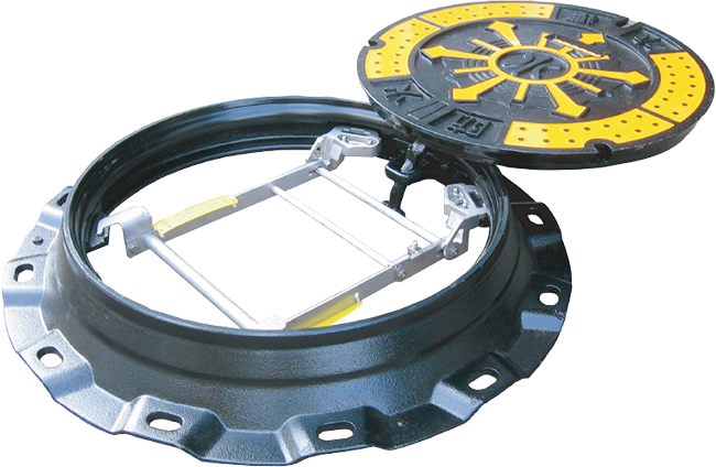 大型の弁室に対応した鉄蓋。重量車両にも耐える高強度設計です。