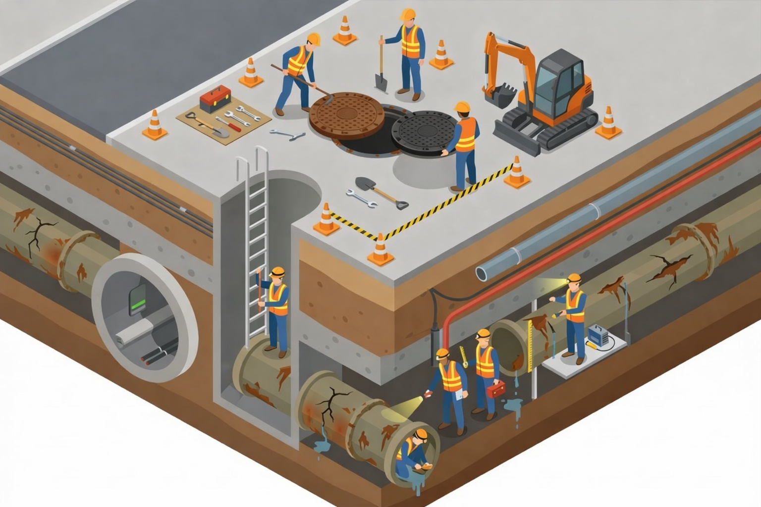 下水道管の復旧工事を工期短縮できる簡易水替工法